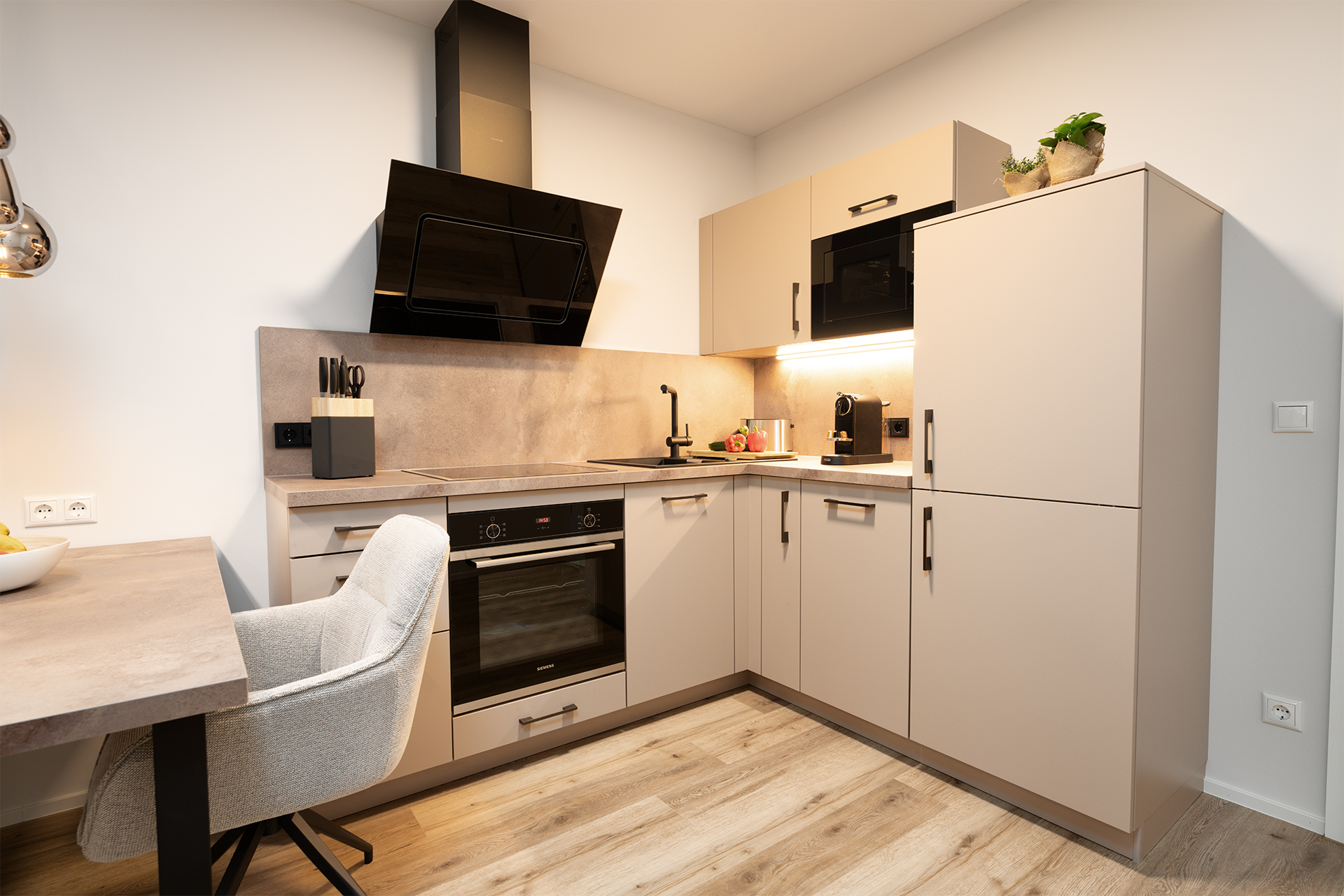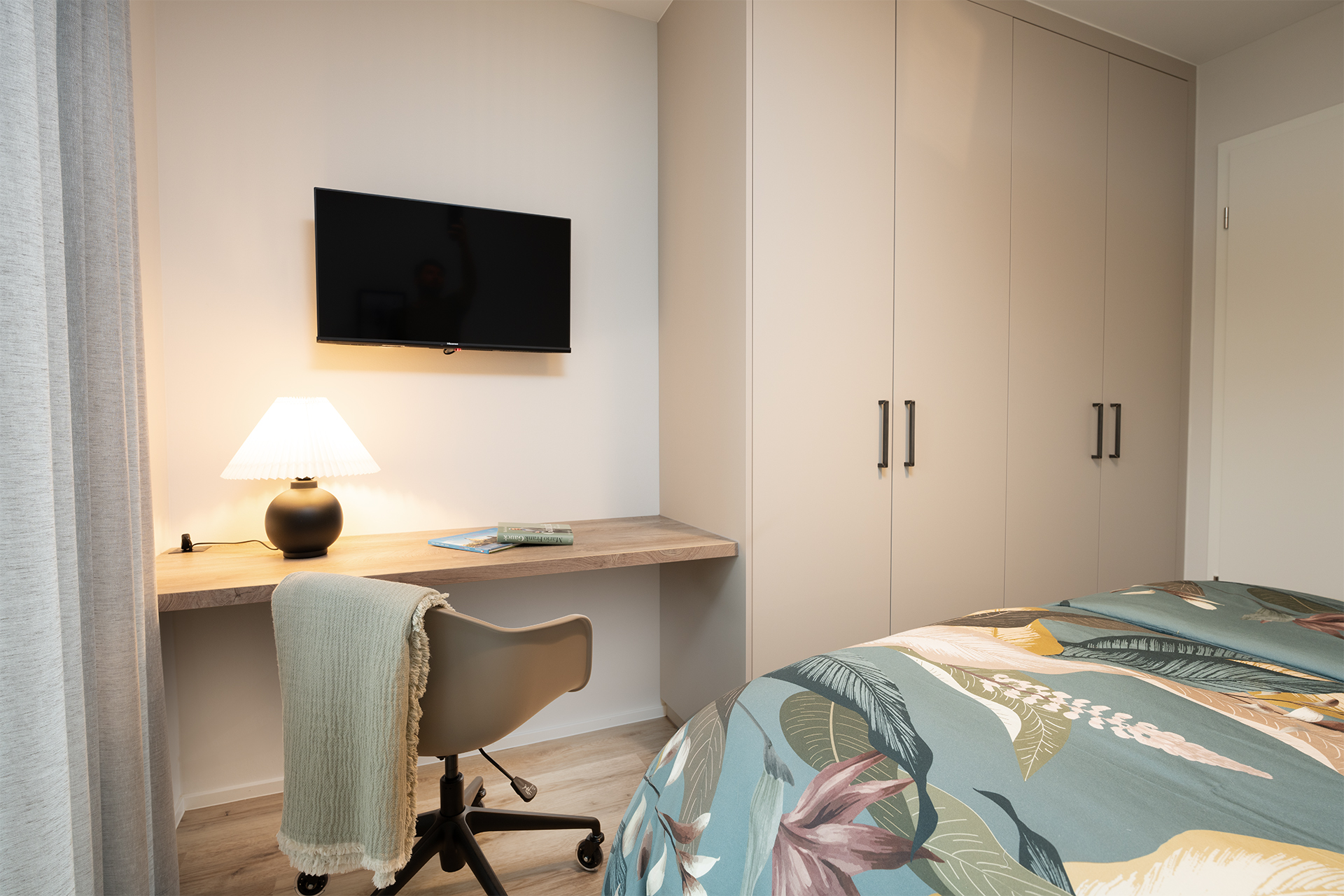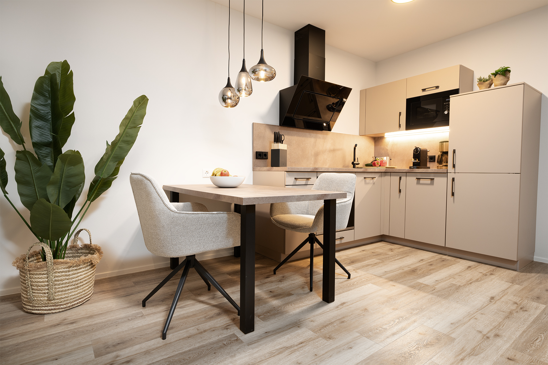 Mit rund 51 m² Fläche ist das Apartment großzügiger geschnitten und hat einen Balkon. Genau wie alle unsere Apartments verfügt auch dieses Apartment über ein gemütliches Doppelbett sowie ein separates Bad mit Dusche. Die Einrichtung ist gehoben, stilvoll und modern konzipiert. Für Ihren erholsamen Aufenthalt in Aachen-Würselen und Entspannung am Abend ist es mit einem Flatscreen-TV in Wohn und Schlafzimmer ausgerüstet. Gerne können Sie das Apartment auch zu zweit beziehen. Natürlich steht Ihnen kostenlos Wlan zur Verfügung. Auf dem hauseigenen Parkplatz finden Sie eine Wallbox um Ihr Auto für den Trip in die Umgebung vorzubereiten. Waschmaschine und Trockner stehen im einem separatem Raum mit Münzspeicher bereit.
