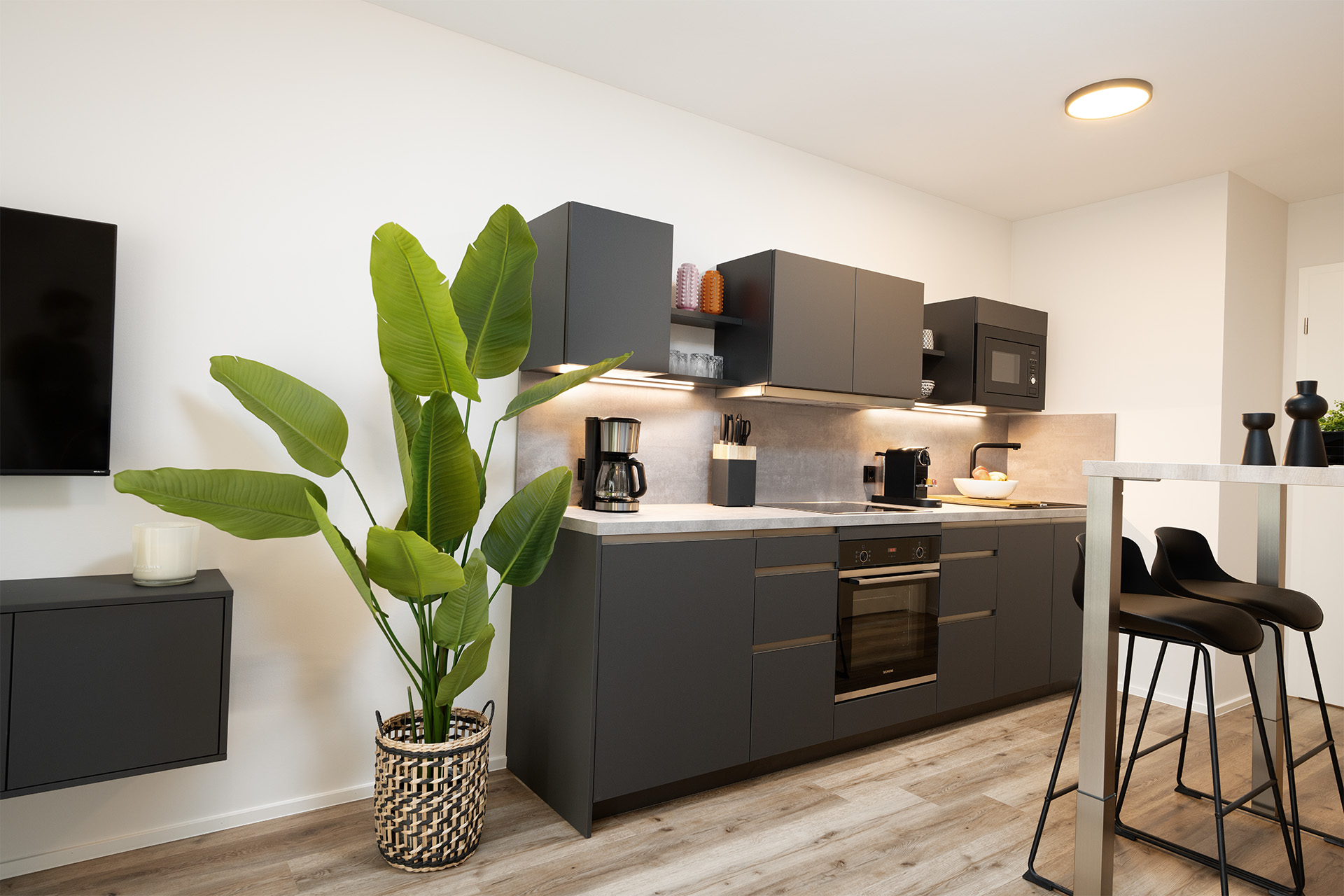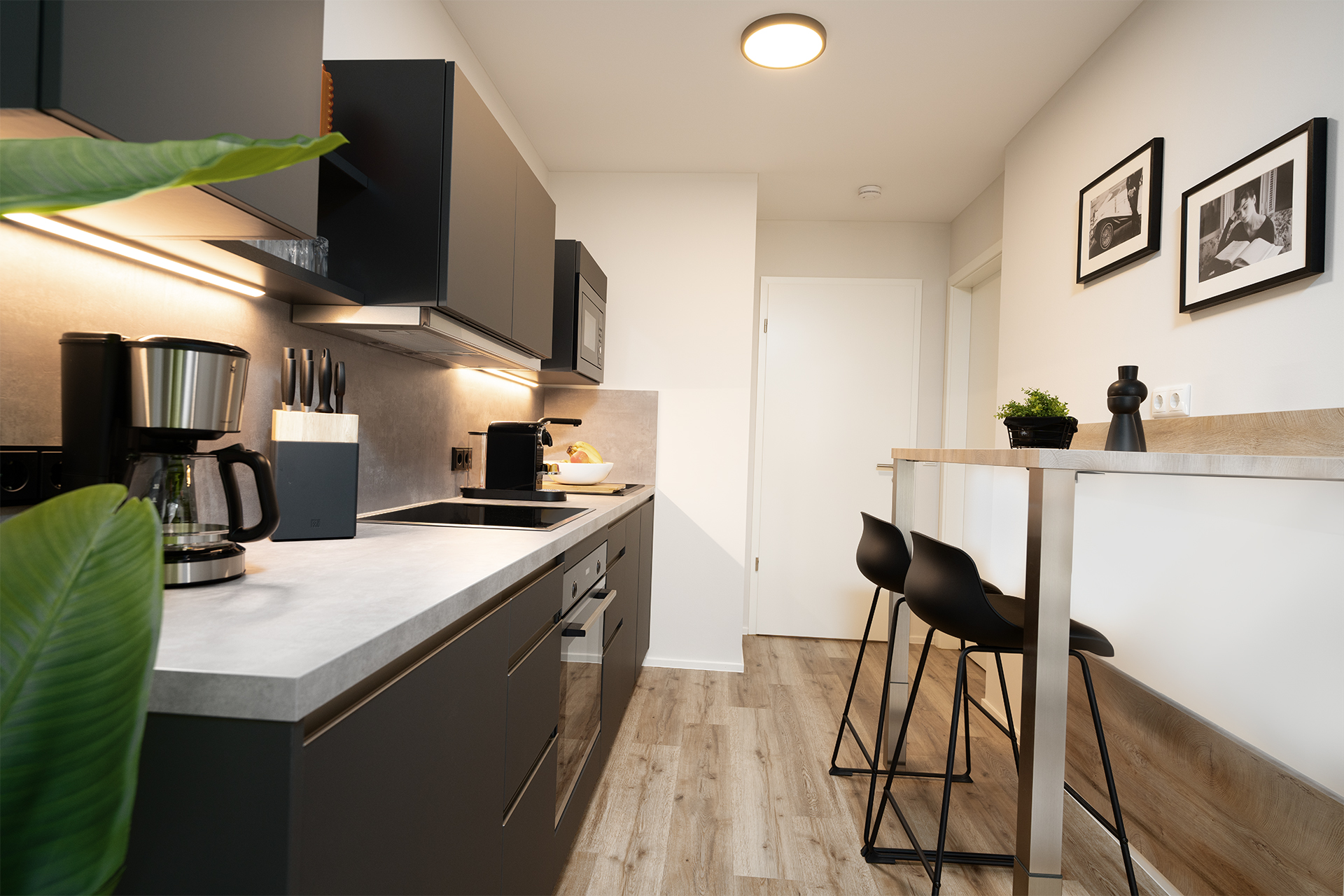 Unser Apartment bietet Ihnen eine moderne und zugleich überaus praktische Einrichtung. Wie alle unsere Apartments ist auch das Apartment voll ausgestattet, verfügt über ein bequemes Doppelbett und ein separates Bad, voll ausgestattete Küche, sowie Flatscreen-TV in Wohn und Schlafzimmer. Ausgelegt ist das Apartment für zwei Person. Mit rund 43m² bietet das Apartment ausreichend Platz und eignet sich ideal für einen langzeitaufenthalt ,kurze Trips nach Aachen oder für Geschäftsreisende. Natürlich ist das Apartment mit kostenlosem Wlan ausgerüstet. Auf dem hauseigenen Parkplatz finden Sie eine Wallbox um Ihr Auto für den Trip in die Umgebung vorzubereiten. Waschmaschine und Trockner stehen im einem separatem Raum bereit.