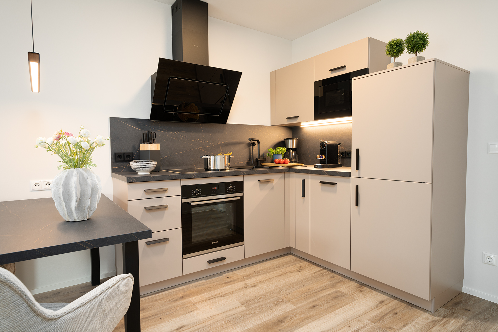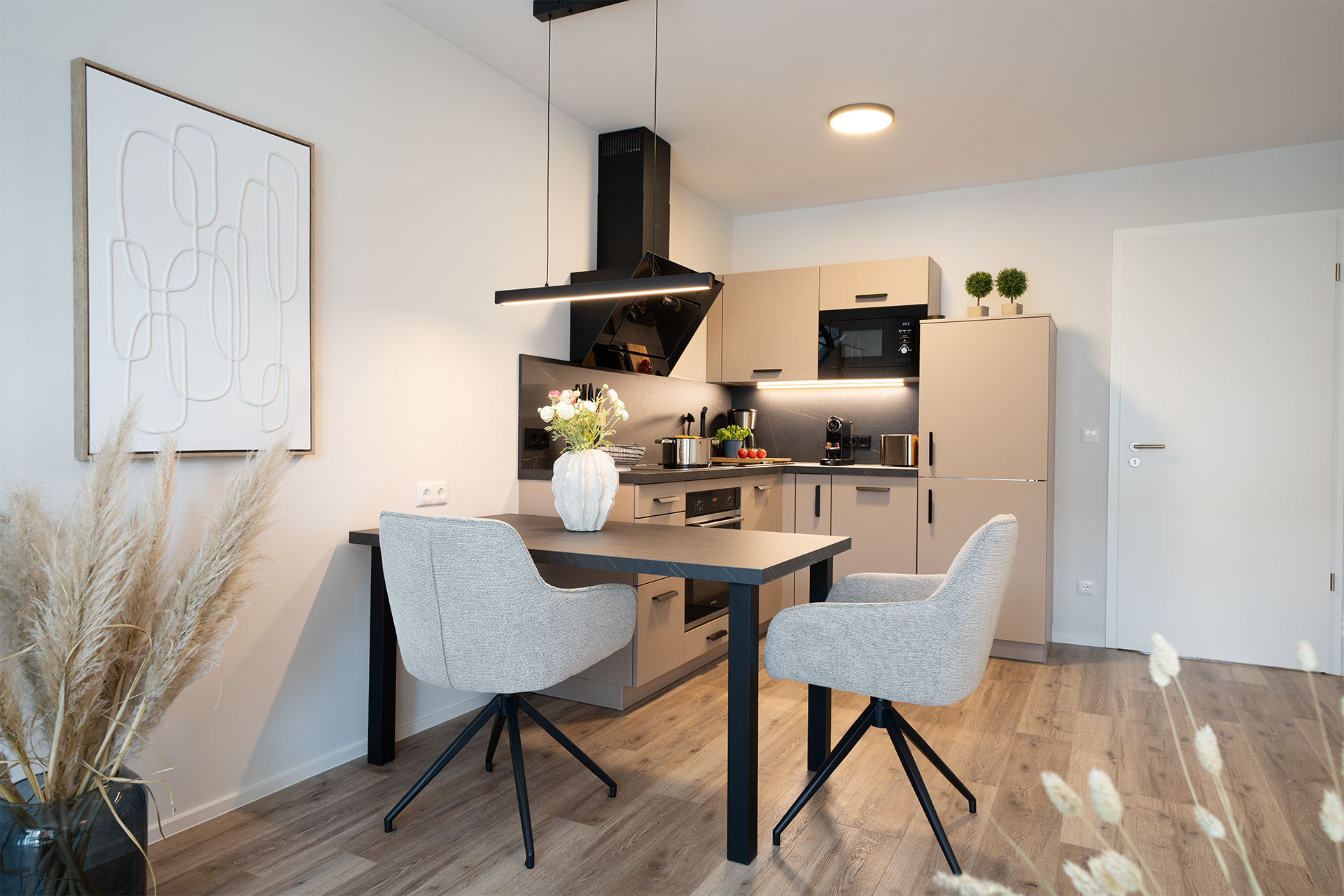 Mit rund 51 m² Fläche ist das Apartment großzügiger geschnitten und hat einen Balkon. Genau wie alle unsere Apartments verfügt auch dieses Apartment über ein gemütliches Doppelbett sowie ein separates Bad mit Dusche. Die Einrichtung ist gehoben, stilvoll und modern konzipiert. Für Ihren erholsamen Aufenthalt in Aachen-Würselen und Entspannung am Abend ist es mit einem Flatscreen-TV in Wohn und Schlafzimmer ausgerüstet. Gerne können Sie das Apartment auch zu zweit beziehen. Natürlich steht Ihnen kostenlos Wlan zur Verfügung. Auf dem hauseigenen Parkplatz finden Sie eine Wallbox um Ihr Auto für den Trip in die Umgebung vorzubereiten. Waschmaschine und Trockner stehen im einem separatem Raum mit Münzspeicher bereit.