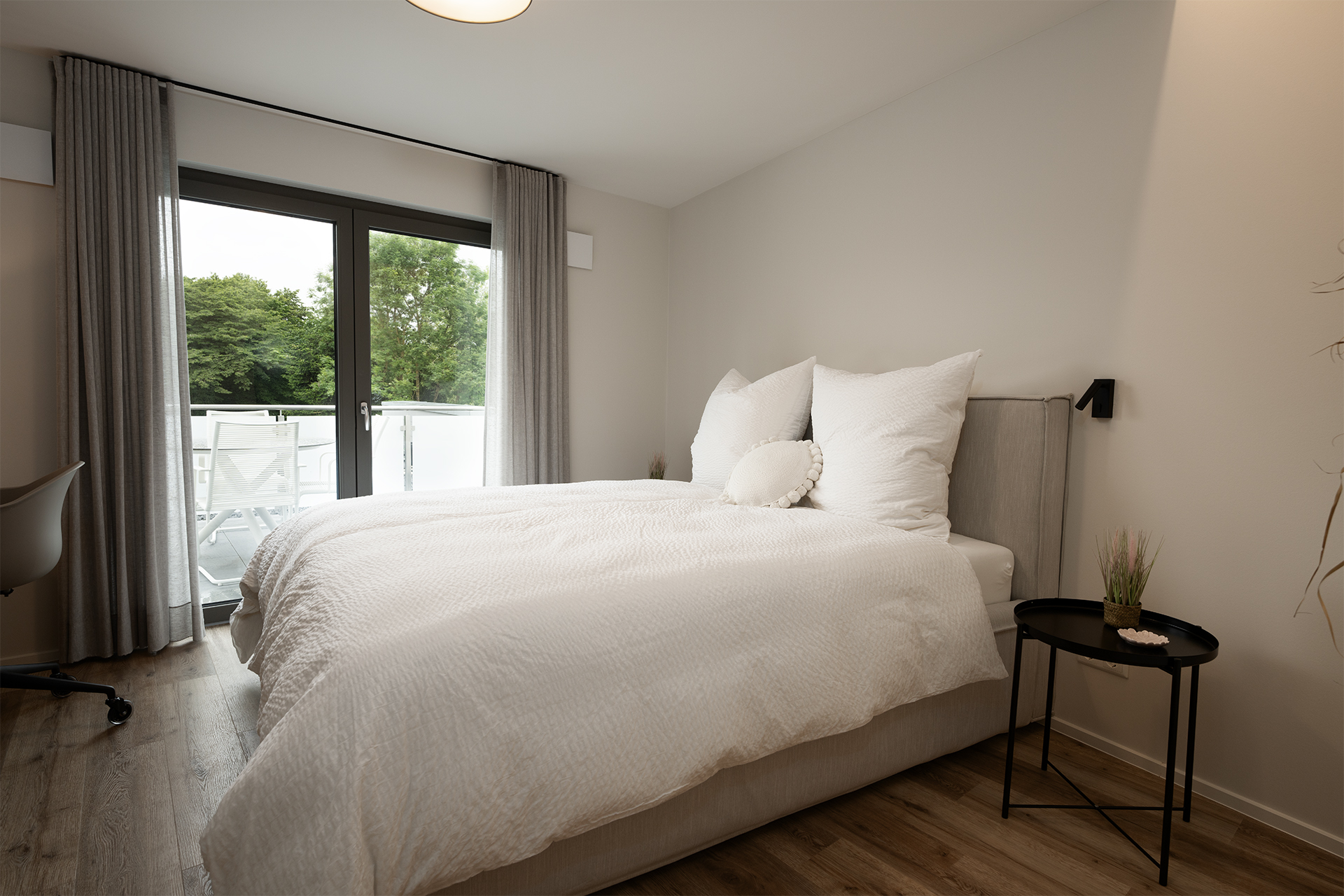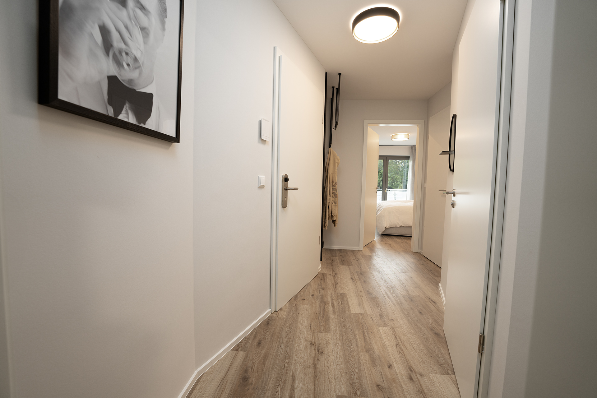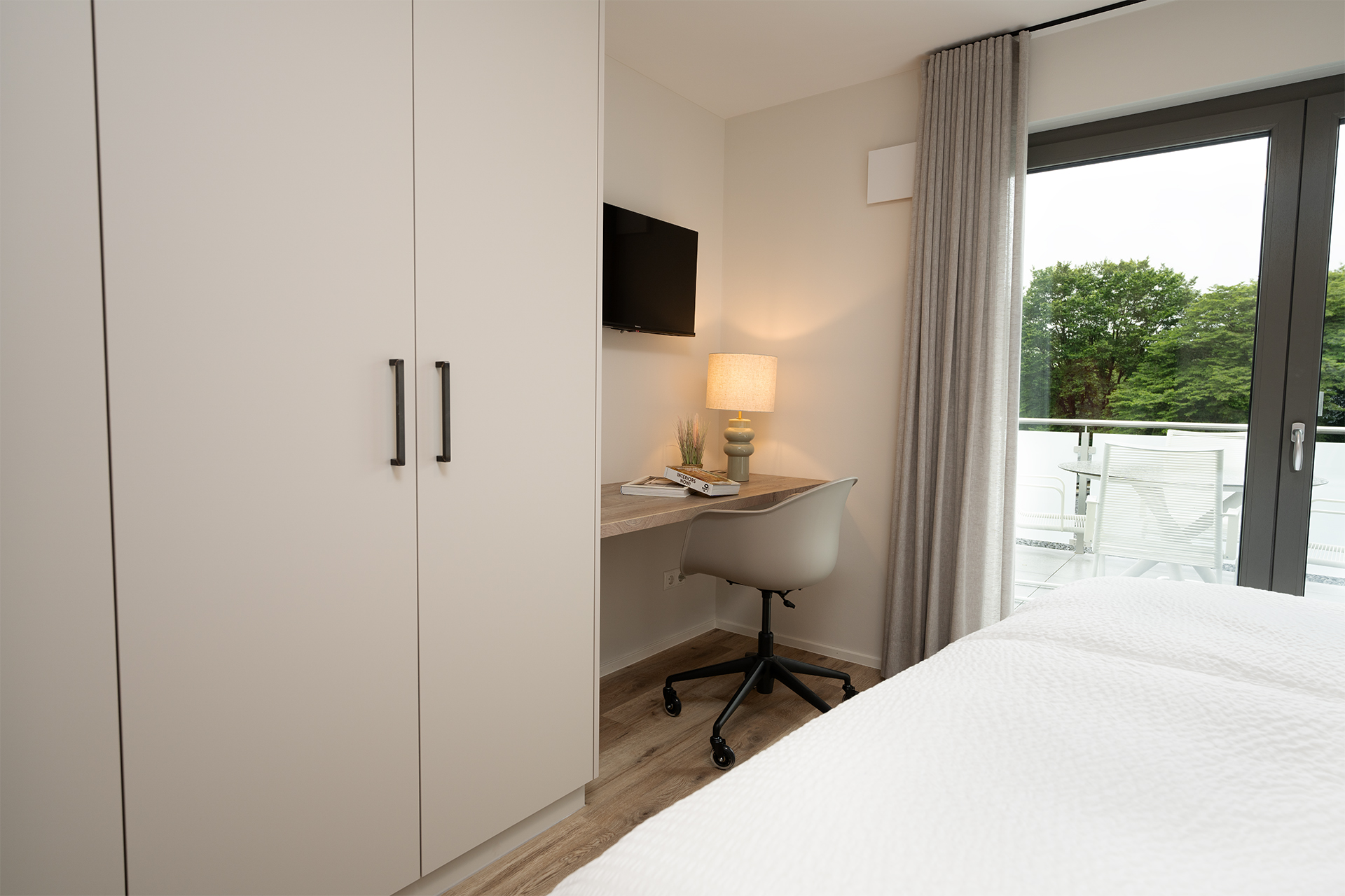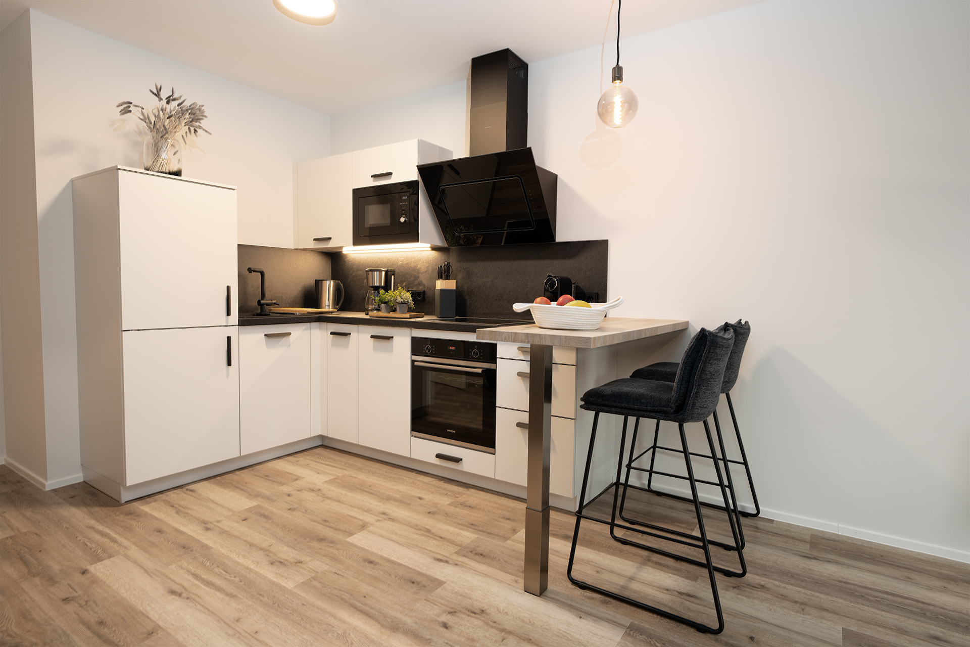 Mit rund 55 m² Fläche ist das Apartment großzügiger geschnitten und hat eine Terrasse. Genau wie alle unsere Apartments verfügt auch dieses Apartment über ein gemütliches Doppelbett sowie ein separates Bad mit Dusche. Die Einrichtung ist gehoben, stilvoll und modern konzipiert. Für Ihren erholsamen Aufenthalt in Aachen-Würselen und Entspannung am Abend ist es mit einem Flatscreen-TV in Wohn und Schlafzimmer ausgerüstet. Gerne können Sie das Apartment auch zu zweit beziehen. Natürlich steht Ihnen kostenlos Wlan zur Verfügung. Auf dem hauseigenen Parkplatz finden Sie eine Wallbox um Ihr Auto für den Trip in die Umgebung vorzubereiten. Waschmaschine und Trockner stehen im einem separatem Raum mit Münzspeicher bereit.