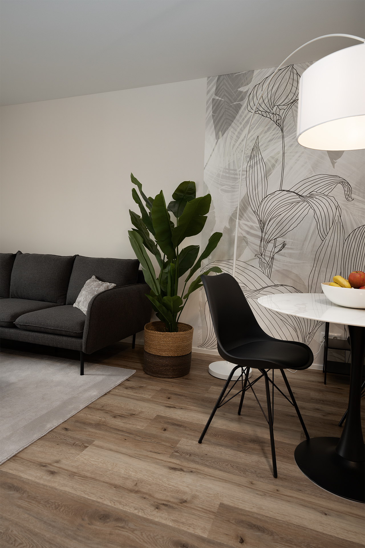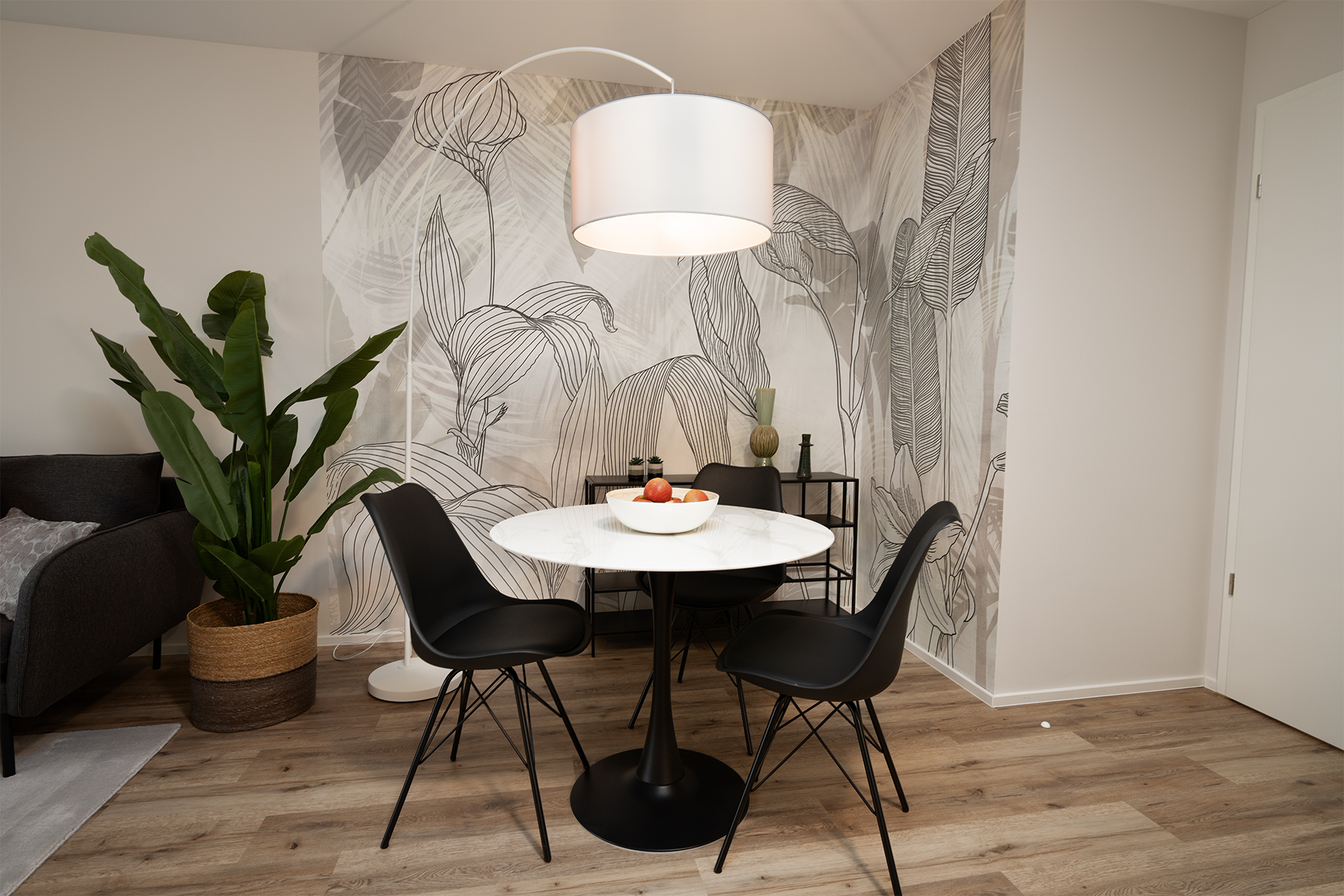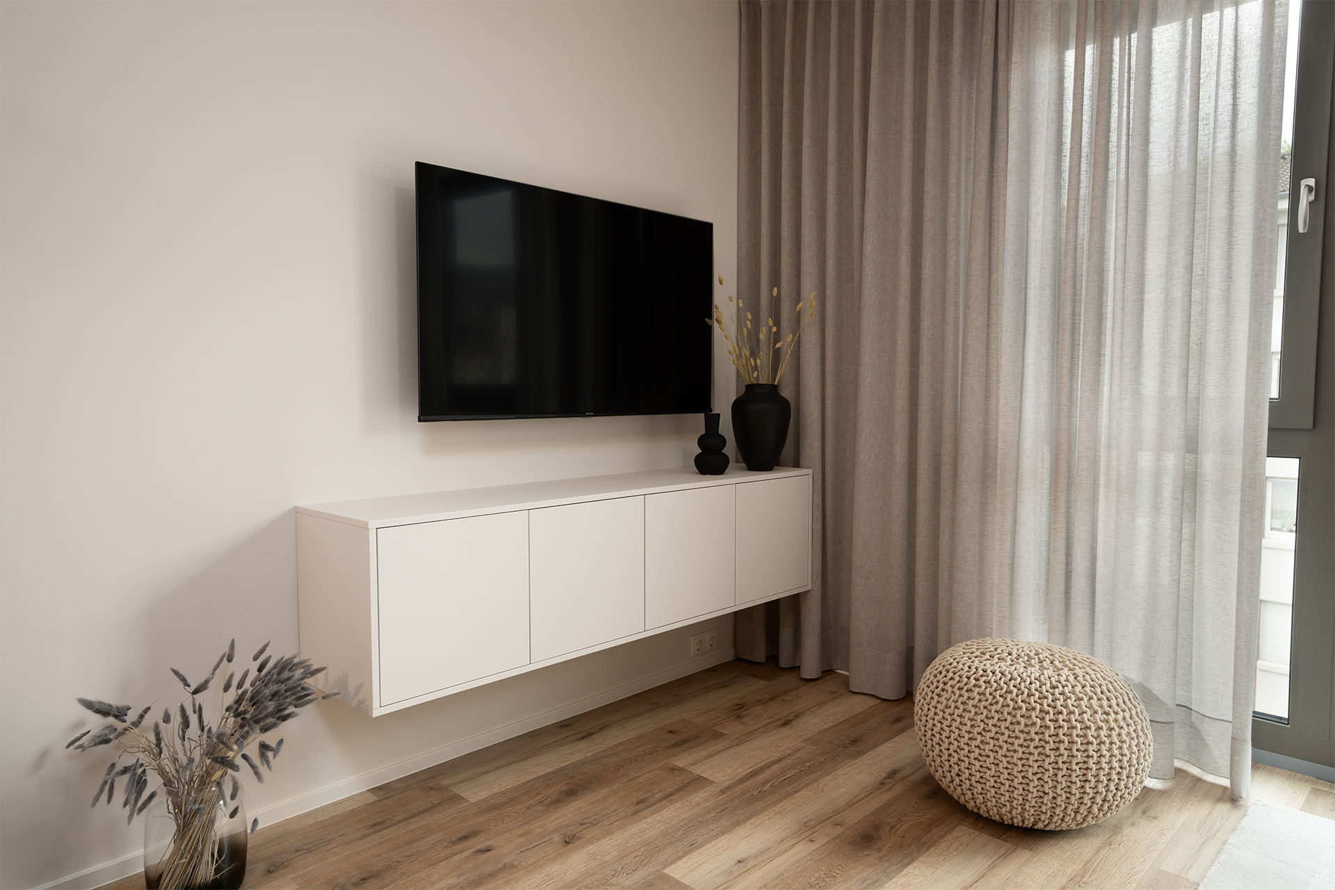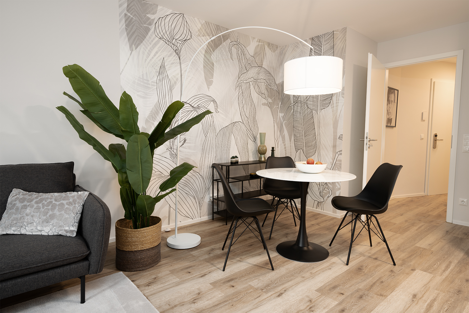 Mit rund 55 m² Fläche ist das Apartment großzügiger geschnitten und hat eine Terrasse. Genau wie alle unsere Apartments verfügt auch dieses Apartment über ein gemütliches Doppelbett sowie ein separates Bad mit Dusche. Die Einrichtung ist gehoben, stilvoll und modern konzipiert. Für Ihren erholsamen Aufenthalt in Aachen-Würselen und Entspannung am Abend ist es mit einem Flatscreen-TV in Wohn und Schlafzimmer ausgerüstet. Gerne können Sie das Apartment auch zu zweit beziehen. Natürlich steht Ihnen kostenlos Wlan zur Verfügung. Auf dem hauseigenen Parkplatz finden Sie eine Wallbox um Ihr Auto für den Trip in die Umgebung vorzubereiten. Waschmaschine und Trockner stehen im einem separatem Raum mit Münzspeicher bereit.