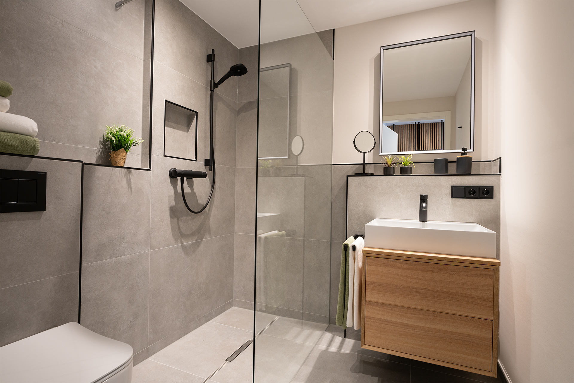 - Handtücher und Föhn im Badezimmer